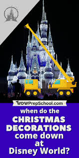 Disney isnt quite as fast at taking their decorations down but they arent too far behind. We typically see decorations start to come down a few days after New Years Eve with the exception being the lights on Cinderellas castle. Decorations for Christmas start coming down by the fifth of January 2020.